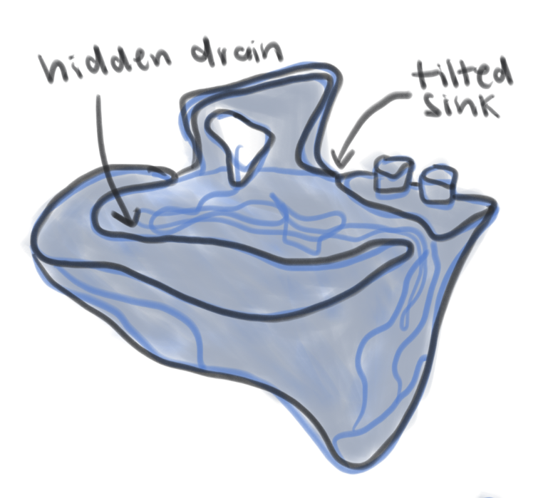 I did some sketches of sculptural, wall-mounted sinks inspired by natural water systems, where stone interrupts and redirects flow. Intended for the Museum of Modern Art, I wanted my sink to function as both a utilitarian object and a sculptural installation, allowing it to read almost as an optical illusion.