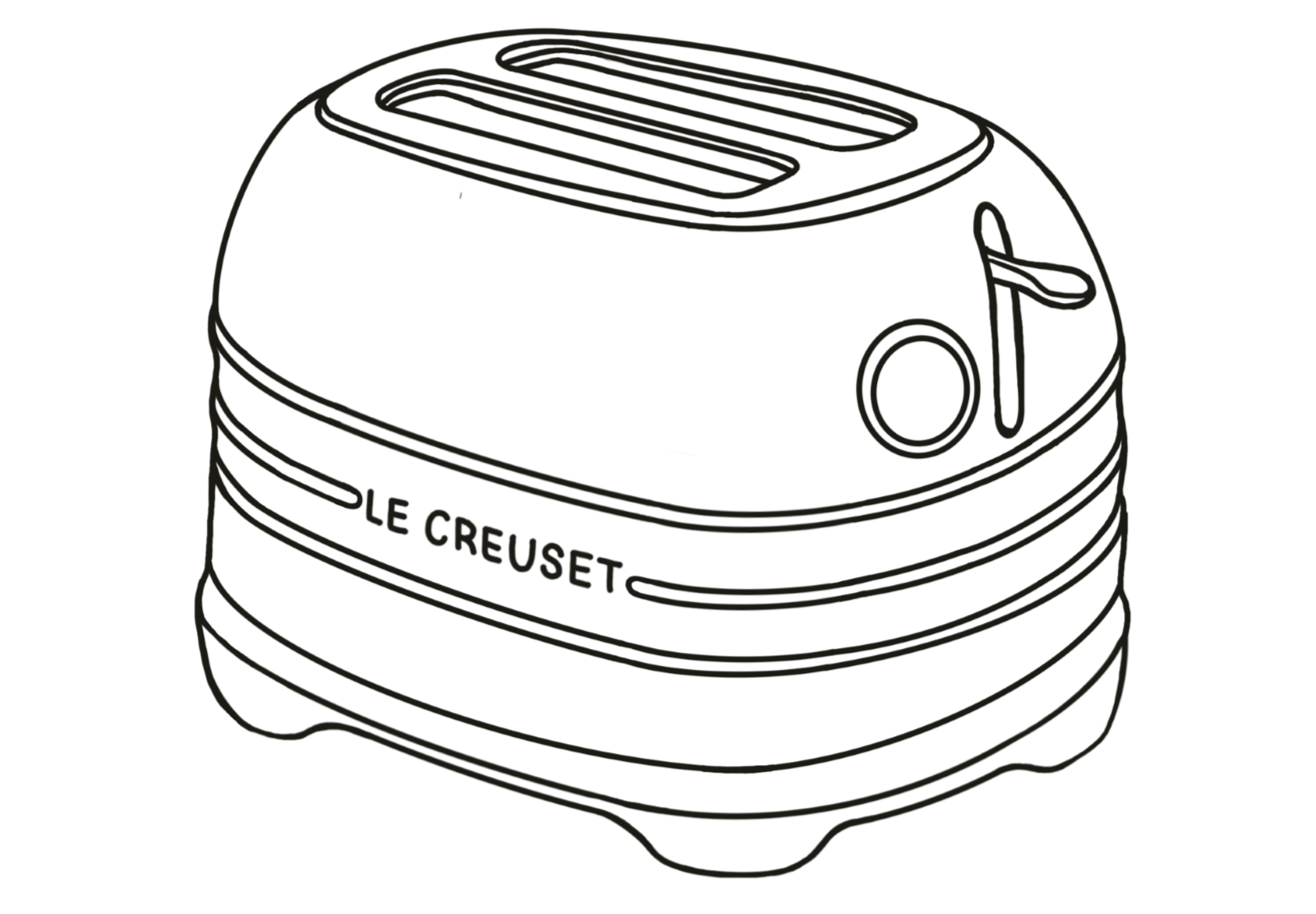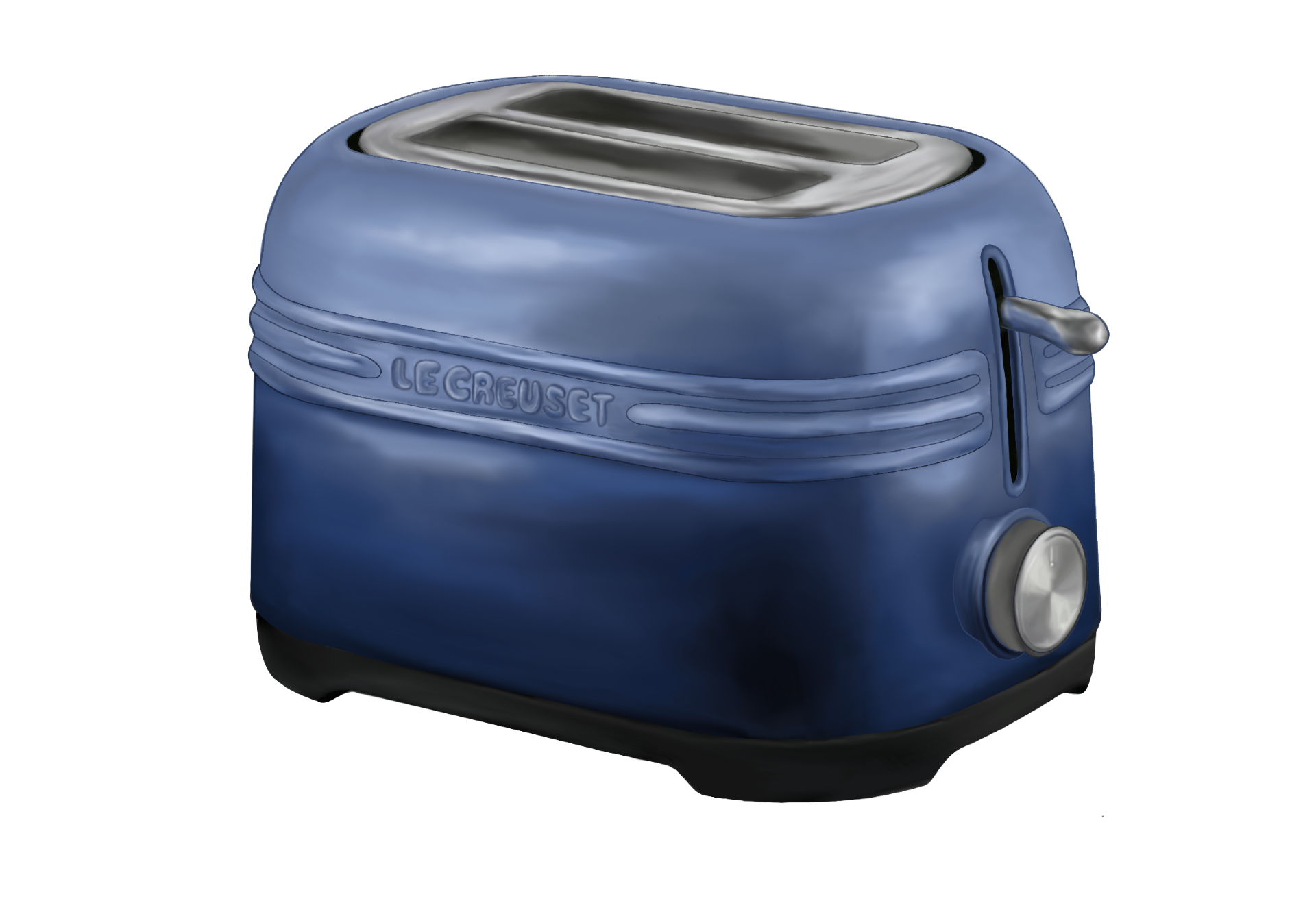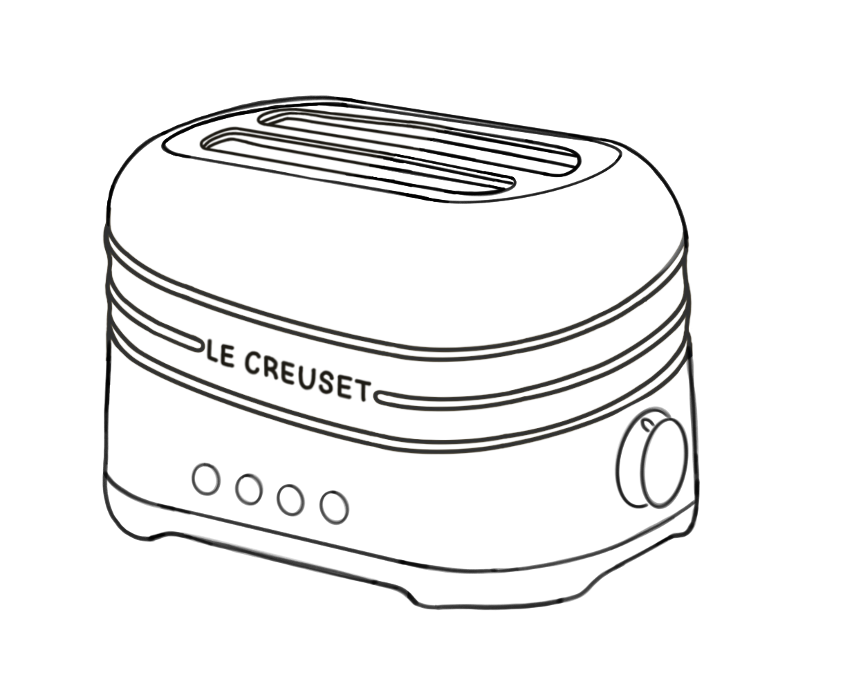 Le Creuset is a heritage brand defined by premium cast iron, colorful enamel, and timeless durability. While their catalog spans from skillets to dinnerware, they currently lack countertop appliances. I identified this as a design opportunity to expand the brand into electronics with a toaster concept. The design language pulls directly from their signature cues: integrated looped handles, high-gloss finishes, concentric rings, and soft, rounded forms.