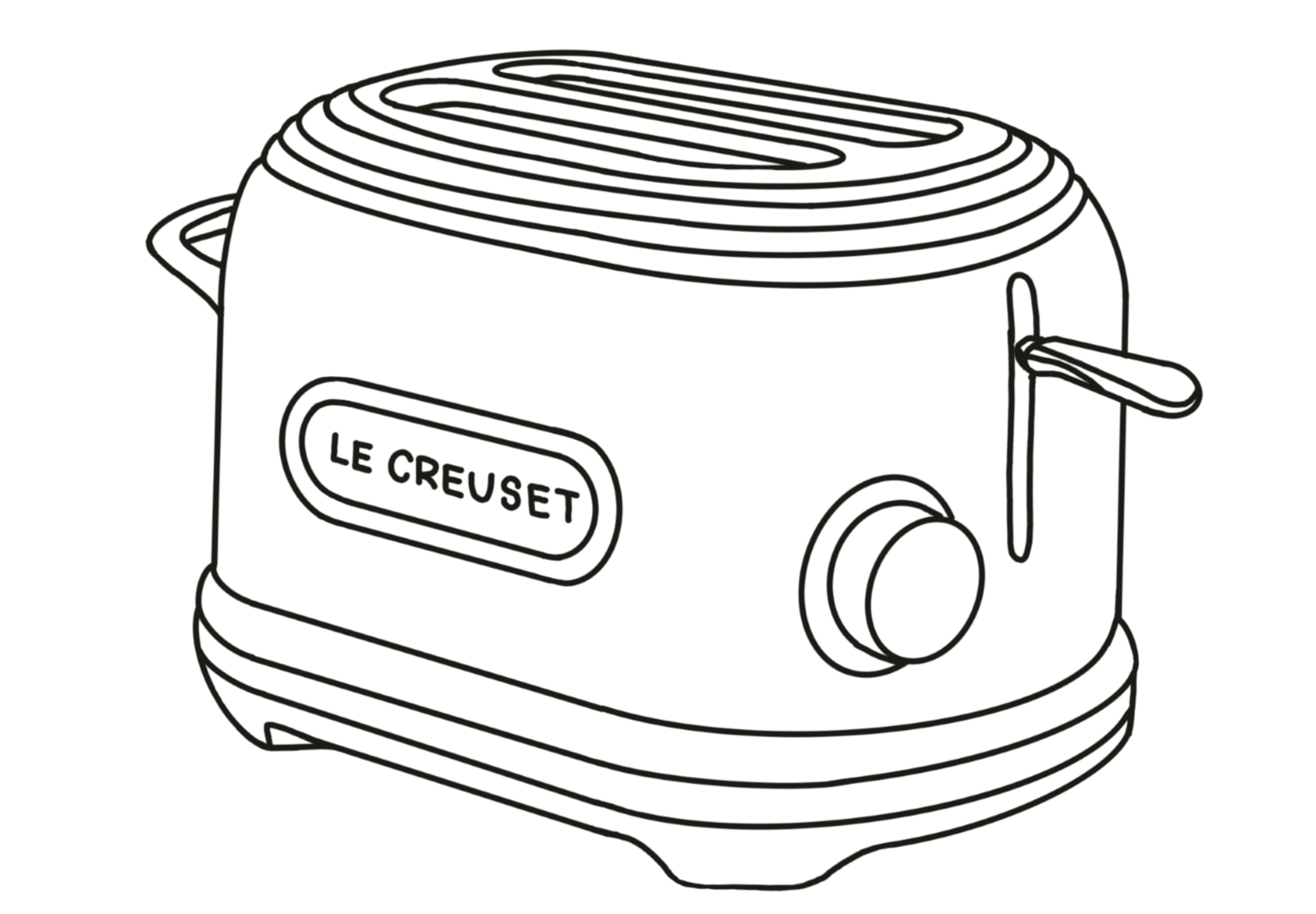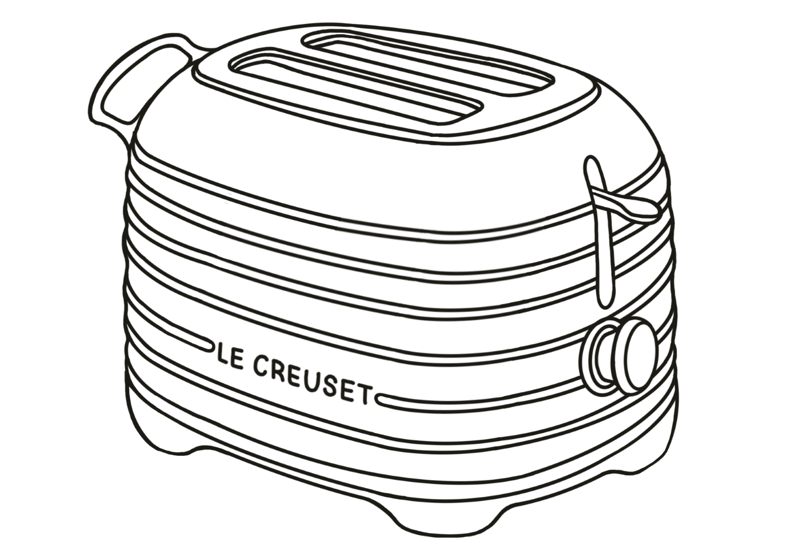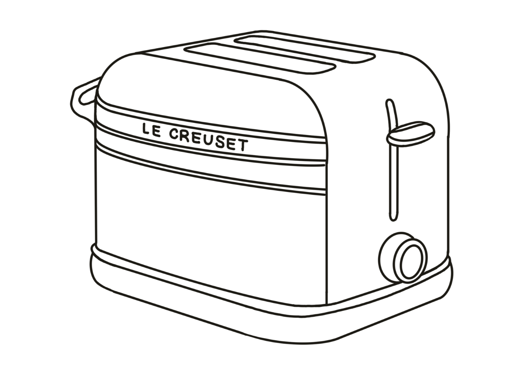 Le Creuset is a heritage brand defined by premium cast iron, colorful enamel, and timeless durability. While their catalog spans from skillets to dinnerware, they currently lack countertop appliances. I identified this as a design opportunity to expand the brand into electronics with a toaster concept. The design language pulls directly from their signature cues: integrated looped handles, high-gloss finishes, concentric rings, and soft, rounded forms.